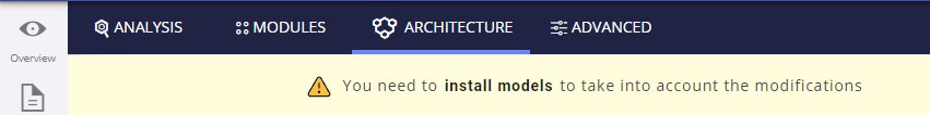 A banner will then inform you that the Install Models action must be run in order for the Architecture Model to be taken into account. This action can be done manually or automatically as part of the next analysis (when it is run):