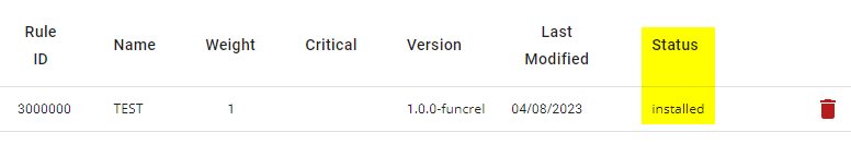 The Status column indicates that the chosen model has been associated (included) with the current application. When the model has been installed, the Status will change to installed: