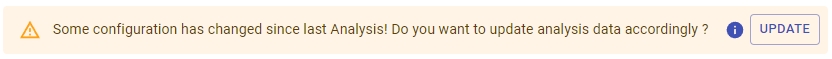 This banner is displayed when CAST Imaging detects that a configuration change has been made and that your data should be updated. If the Update button is clicked, then a job will run to ensure that all Analysis Results Indicator data is correct. The triggers for this banner are identical to the triggers described in the section Update Banner in the Config section.