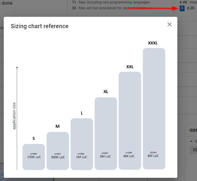 In addition, an indicator shows the “size” of the application as determined by CAST: