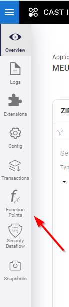 - check transaction and function point information (available with appropriate CAST licenses only)