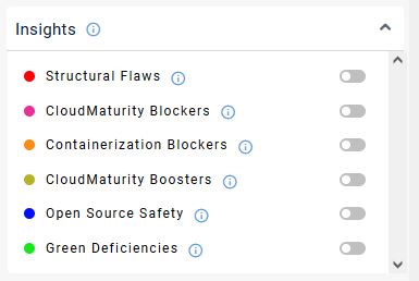 These insights provide information about how well prepared your application is for cloud migration, i.e. moving from an on premises deployment to a cloud scenario. More precisely, this is a list of items or behaviour found in the application that could either hinder a move to the cloud and may therefore need attention (a blocker) or that already conform to cloud best-practices (a booster).