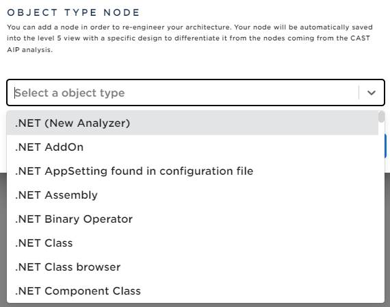 Provides a means to add an object type of your choosing to the view. All possible object types can be added, except those that already exist on the view whether as other concept nodes, or object types resulting from analyses: