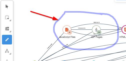 Toggles between grouped links (default position) and ungrouped. Explanation: some links at object level will be “highlighted”. This indicates that there is more than one link between the objects and therefore these links are grouped: