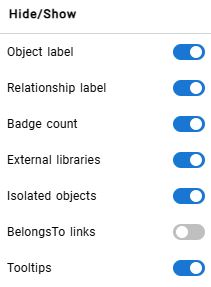| Relationship label | Toggle the display of the name of the link between two objects/nodes. Enabled by default. |