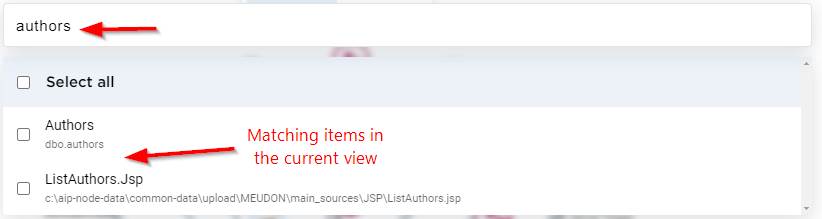 Provides a mechanism to search for nodes or objects that are present in the current view: