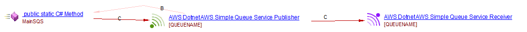 For the Publish method, a AWS Dotnet SNS Publisher object is created. Its name is that of the topic. For the Subscribe methods, a AWS Dotnet SNS Subscriber object is created. Its name is that of the topic. Then for each supported protocol, an object is created with a callLink from the subscriber to that object. The supported protocols are the following: