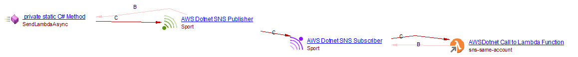 The com.castsoftware.wbslinker will create a callLink between the SNS Publishers and SNS Subscribers which have the same name.