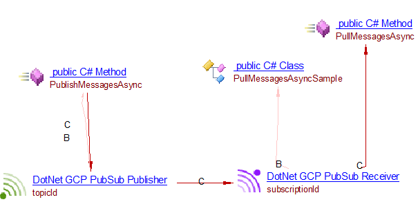 Dotnet GCP PubSub Receiverobject is created. Its name is that of the subscription. - For the create subscription method, this extension evaluates the subscription name as well as the name of the topic to which the subscription is made. This information is used by the com.castsoftware.wbslinker extension to link publishers with matching receivers.