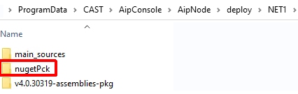 If a .csproj file is detected in the delivered source code, the extension will be downloaded and installed as part of the analysis process. If the .csproj file contains NuGet package dependency references, the defined NuGet repository will be automatically accessed and resources will be extracted to a dedicated folder called nugetPck in the Deploy folder: