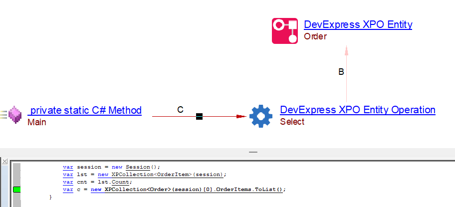 This extension should be installed when analyzing a .NET project that uses DexExpress XPO persistence framework, and you want to view CRUD transactions of the XPO persistent objects. Links to corresponding SQL database tables can also be resolved, provided that the SQL database has been extracted and DDL has been created.