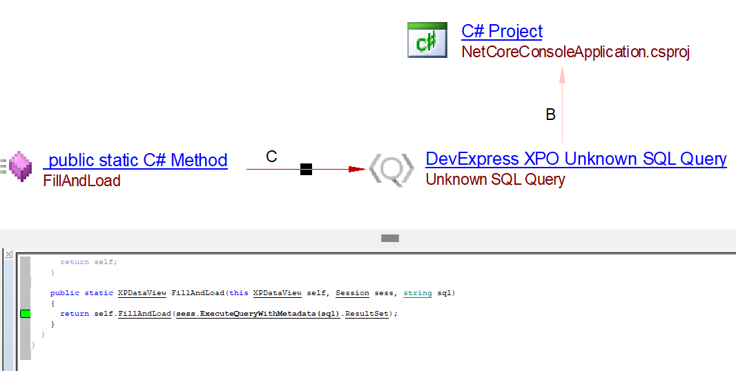| DevExpress XPO Unknown SQL Query | An object is created for each direct SQL query found in XPO project and the exact query cannot be resolved |