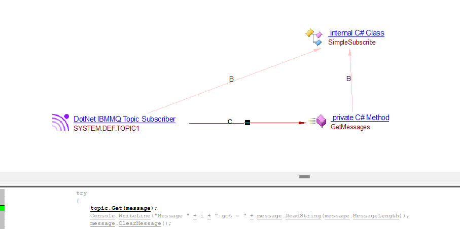 | callLink | callLink between the DotNet IBMMQ Queue Consumer or DotNet IBMMQ Topic Subscriber objects and the caller C# method | Consumer API’s support by IBMMQ : IBM.WMQ.MQQueue.Get IBM.WMQ.MQDestination.Get IBM.WMQ.MQQueue.PutReplyMessage IBM.XMS.IMessageProducer.Send |