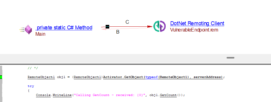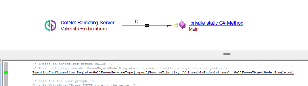 RemotingConfiguration.RegisterWellKnownServiceType(typeof(RemoteObject1), "VulnerableEndpoint.rem", WellKnownObjectMode.Singleton);