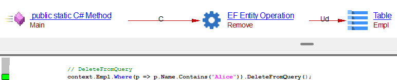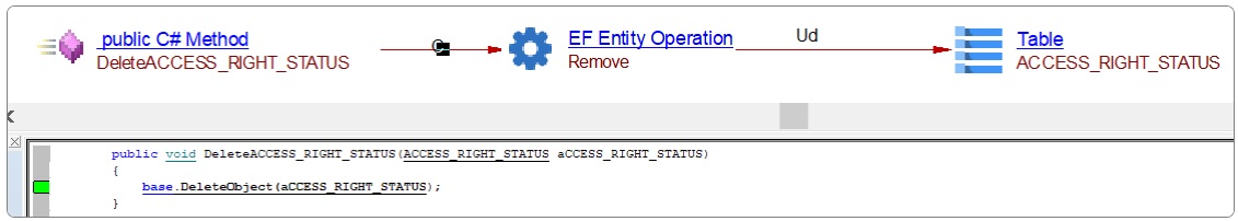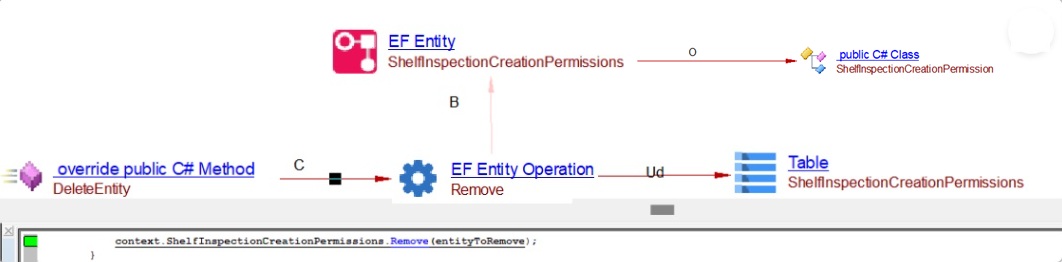 callLink between the caller .NET Method object and EF Entity Operation / EF Unknown Entity Operation object useDeleteLink between the EF Entity Operation object and Database Table object |