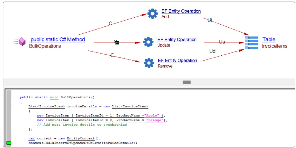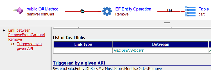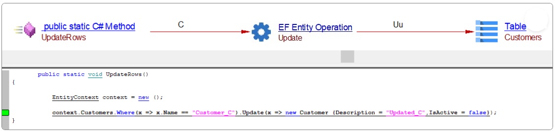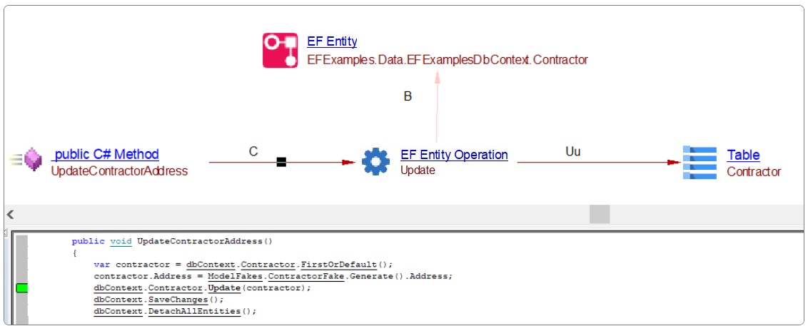 callLink between the caller .NET Method object and EF Entity Operation /EF Unknown Entity Operation object useUpdateLink between the EF Entity Operation object and Database Table object |