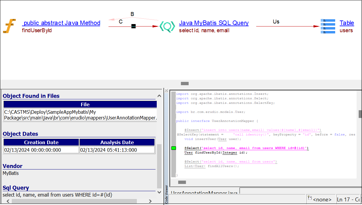 | Java MyBatis SQL Query | An object is created for each native SQL query found in java project and resolved in a method call/xml file | |