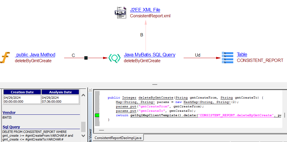 | callLink | Java MyBatis SQL Query | Procedure | Created by SQLAnalyzer when DDL source files are analyzed |