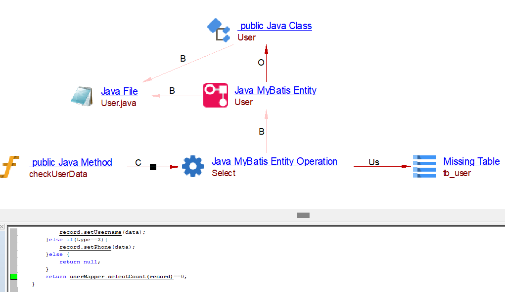 | useLink | Java MyBatis SQL Query | Table, View | Created by SQLAnalyzer when DDL source files are analyzed |