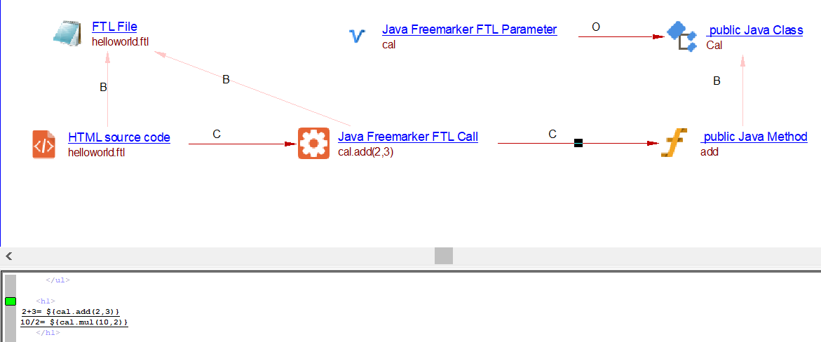 | callLink | Between HTML source code objects(.ftl and similar files) and CallToFTL objects. |