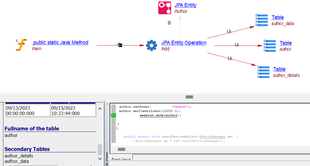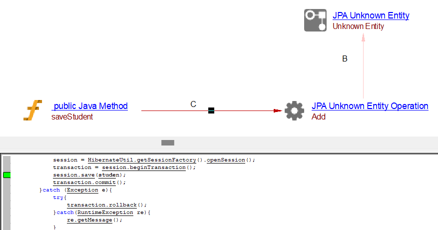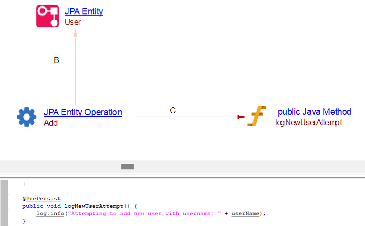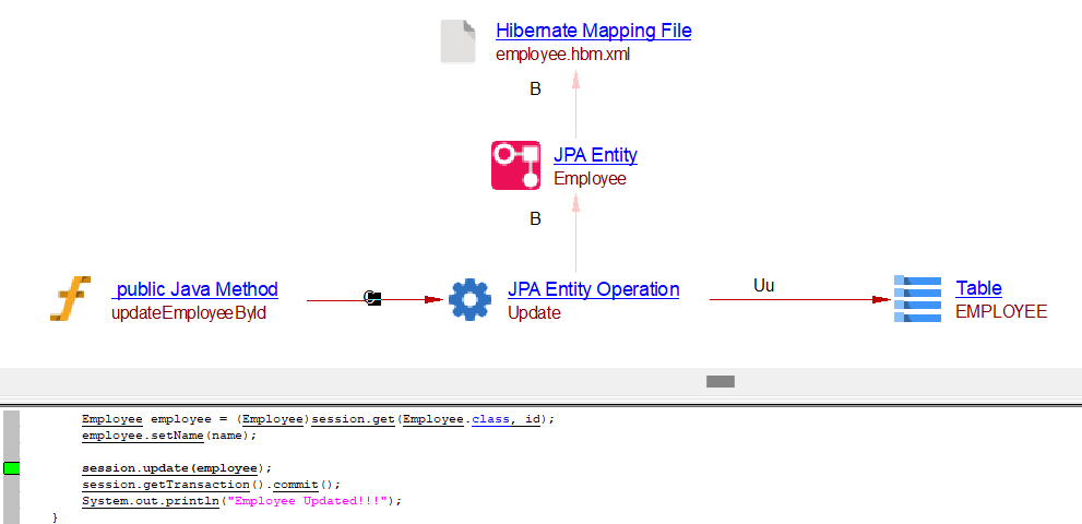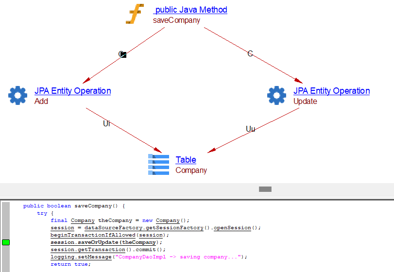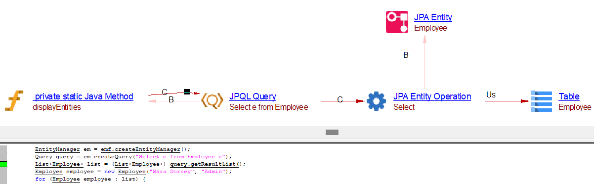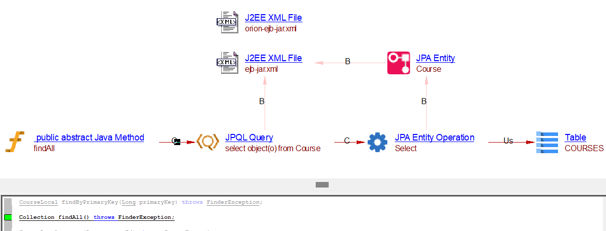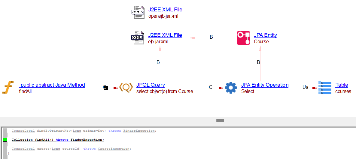 - “callLinks” from Java methods to JPA Entity Operation objects.