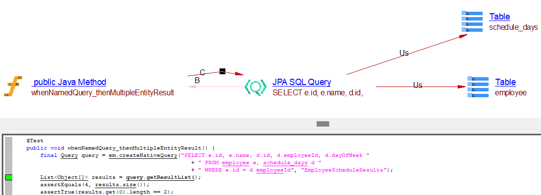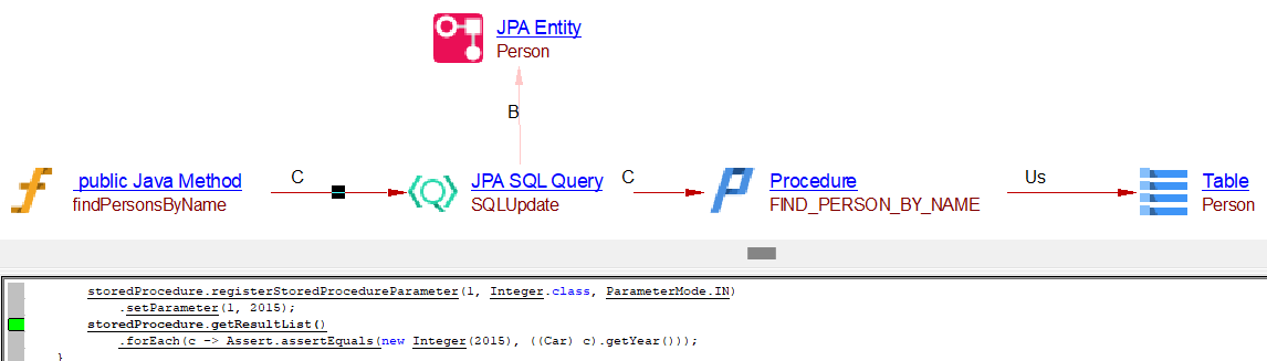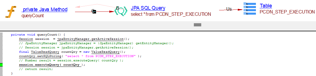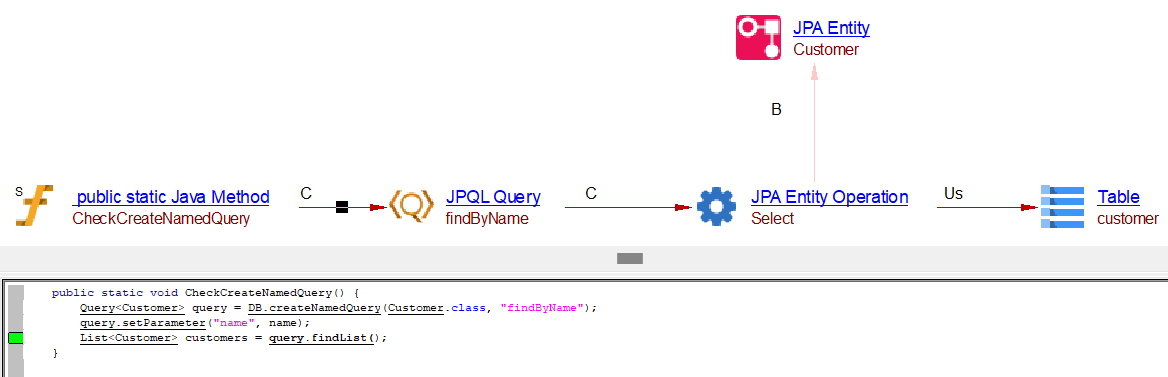 | callLink | Java Method | callLink between the caller Java Method and JPA SQL Query / JPQL Query / JPA Unknown SQL Query object | |