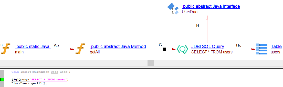 | Link Type | Caller type | Callee type | Supported Jdbi Methods and Annotations |