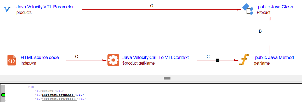 | relyonLink | Between Java Velocity VTL Parameter and respective Context JAVA class. | org.apache.velocity.tools.view.VelocityViewServlet.getTemplate org.apache.velocity.app.Velocity.getTemplate org.apache.velocity.app.VelocityEngine.getTemplate org.apache.velocity.tools.view.VelocityView.getTemplate org.apache.velocity.context.Context.put org.apache.velocity.VelocityContext.put org.apache.velocity.context.AbstractContext.put NOTE: Java Velocity VTL Parameter object is created, only if the above APIs are called from overridden handleRequest method of VelocityViewServlet/VelocityLayoutServlet derived class. |
