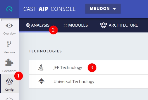 The Message Queues extension does not contain any discoverers or extractors, therefore, no “Message Queue” specific projects will be detected. Your Message Queue source code should be part of a larger Java/JEE related project which you are also analyzing, and as such, JEE Analysis Units will be created - simply ensure that the path to your Message Queues source code is included in these JEE Analysis Units: browse to the Application - Config panel and expand the JEE Technology option (3):