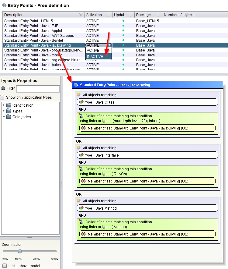 Note that the JEE Analyzerextension also provides Java Swing transaction entry points and these overlap with the configuration provided in the Java Swing extension. CAST recommends disabling the Java Swing transaction entry points provided by the JEE Analyzer extension on a case by case basis, where conflicting results are produced.