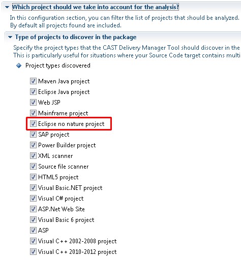 | Supported project type | CAST Delivery Manager Tool interface |