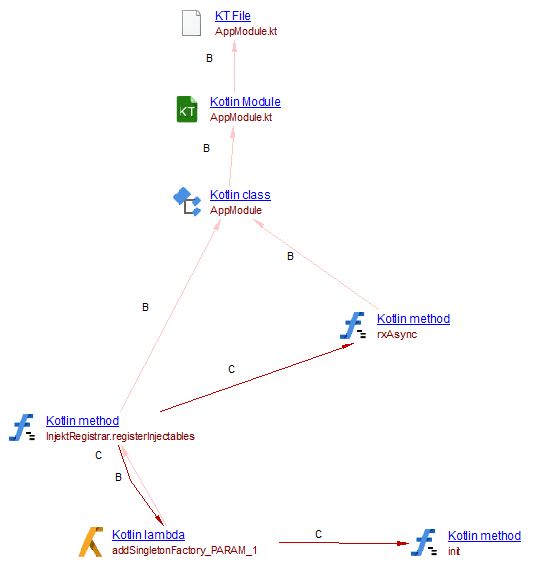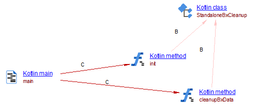 If your application contains Kotlin source code and you want to view these object types and their links with other objects, then you should install this extension. All files with the .kt extension are analyzed. Kotlin code and Java code may coexist in the same application, and a Kotlin method may call a Java method, and inversely. If a JEE analysis is defined for the Application, call links from Kotlin methods to Java methods should be created. But links from Java methods to Kotlin methods are not supported yet: this is a limitation.