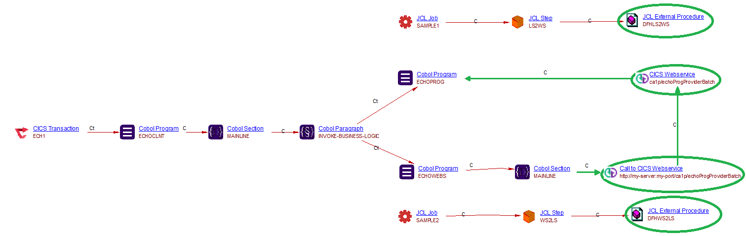 - Cob program ECHOWEBS: the cob program which handles the CICS Webservice as a Requester