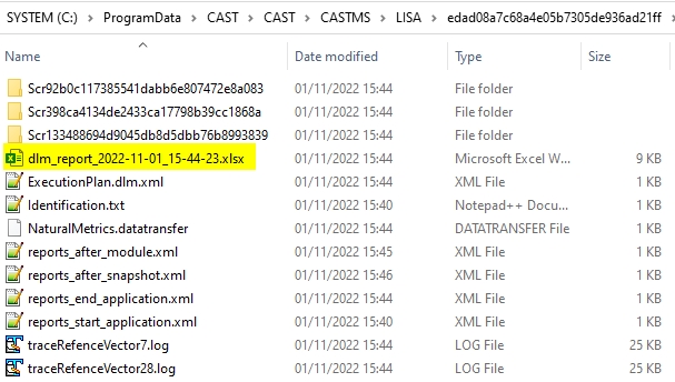 This Microsoft Excel report is stored in the LISA folder (Large Intermediate Storage Area) which is usually set to %PROGRAMDATA%\CAST\CAST\CASTMS\LISA on the analysis node: