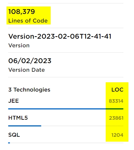 The LOC values displayed in the Welcome Page specifically for “Technologies” are produced by this extension: