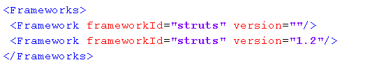 Identifies frameworks based on the XMLNS attribute of the first node in the XML file, or the schema location. For example, the following is taken from a Spring Framework 3.1 for Spring Beans: The above would be matched by the following predefined pattern: