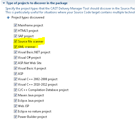 - and this extension (nor its predecessor the DMT XML Scanner 1.0) have been installed before, then both discoverers will not be automatically activated (i.e. ticked). If you would like to benefit from the information provided by the extension in the Source Code Delivery report, please enable them before the next package action.
