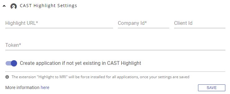 - in ≥ 2.10, saving the entries in Administration Center - Settings - CAST Highlight Settings will ensure that the extension is automatically added to the Force Installation list - in other words the extension will be automatically installed in all existing applications when the next analysis is run and all new applications by default.