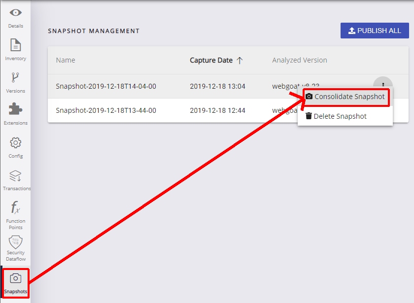 If you are configuring custom tiles using Quality Standards tags in the Health Dashboard, you will need to upload the most recent snapshot to the Measurement schema in order that the new tags are transferred (the Quality Standards Mapping extension (i.e. extensions in general) are only installed to the Analysis and Dashboard schemas). To do so, run the Consolidate Snapshot action on the most recent snapshot: