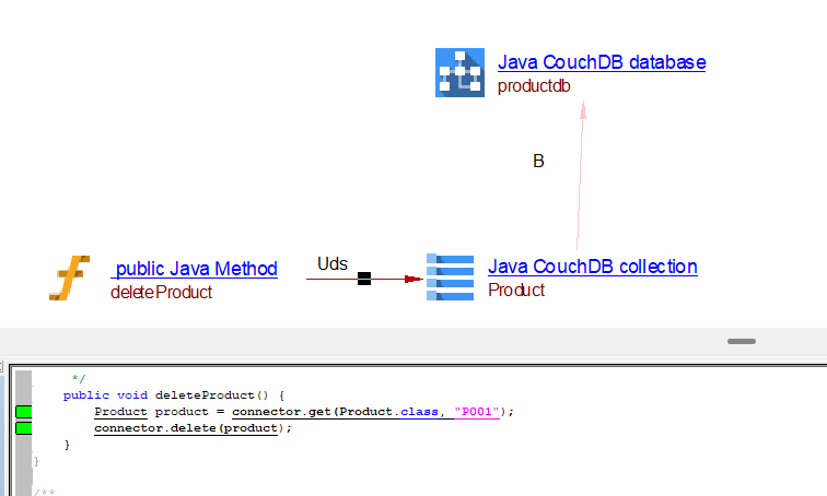 | useDeleteLink | Between the caller Java Method objects (constructors also) and Java CouchDB Collection Object | remove delete |
