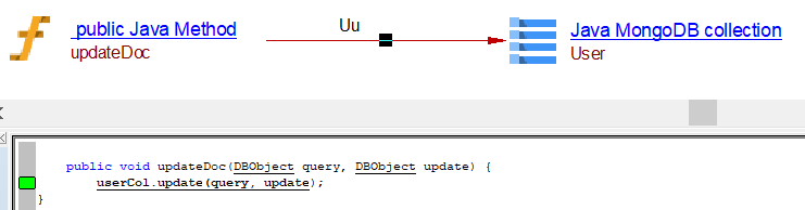 | useUpdateLink | Between the caller Java Method objects (constructors also) and Java Mongo Collection Object | update updateOne updateMany findOneAndUpdate fineOneAndReplace findAndModify rename replaceOne |