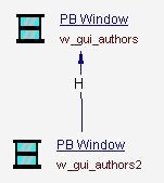 | Inherit | When there is inheritance between controls, user objects, menus, and windows. In the following example, the window “w_gui_authors2” inherits from “w_gui_authors”: