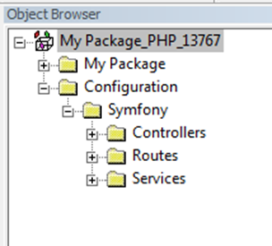 All Symfony objects will appear under their respective folders as shown below :