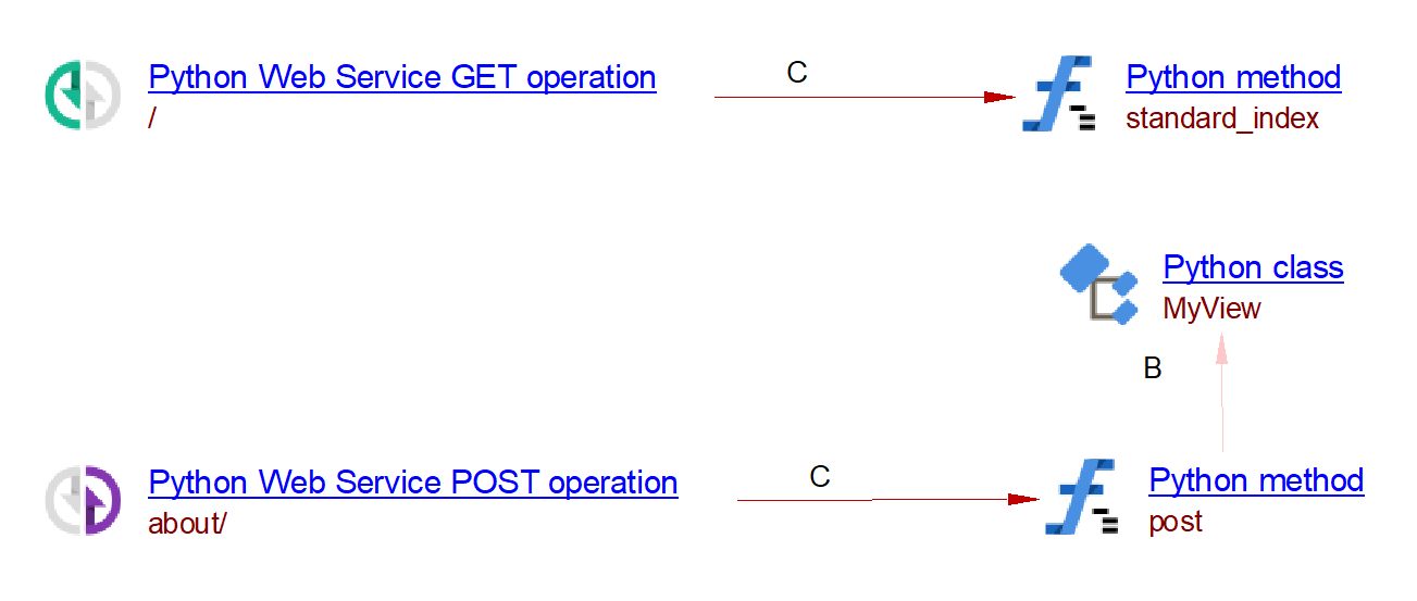 Example link from method “m” to the get web2py service:
