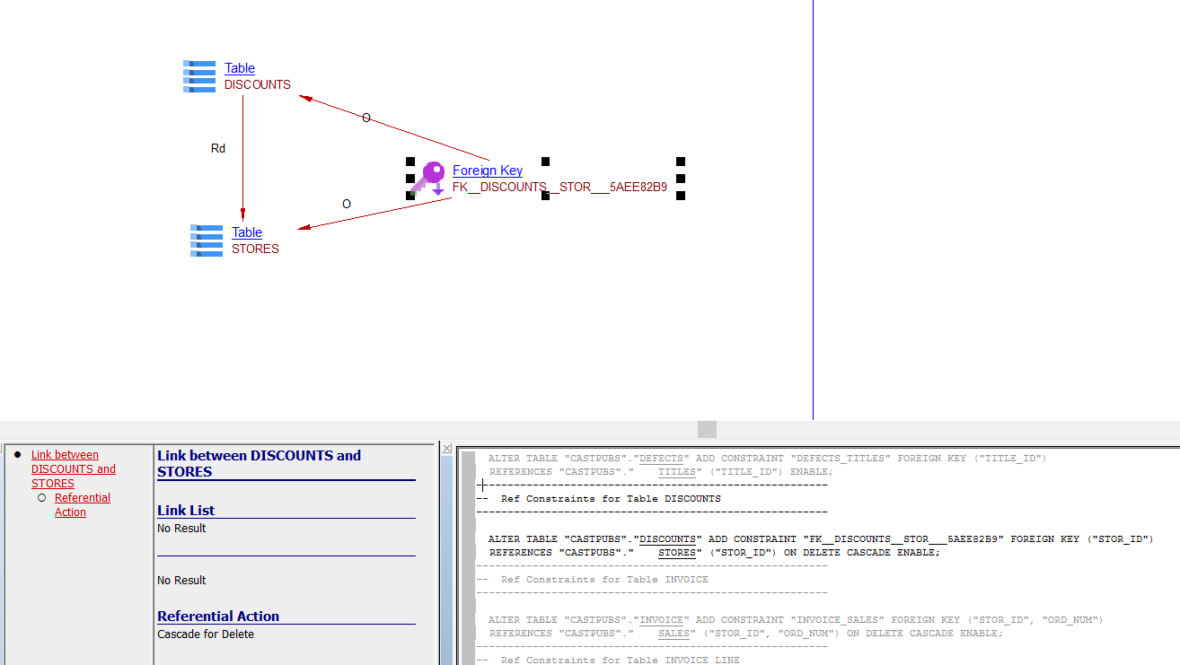 When transitioning from the Db2 Analyzer to the SQL Analyzer, links between Tables and Indexes, Foreign Keys, Primary Keys and Unique Keys will appear to be reversed when comparing the analysis results of the Db2 Analyzer and the SQL Analyzer. This is because the representation of links in the SQL Analyzer uses a different method (which is identical for all supported RDBMS) to the Db2 Analyzer.