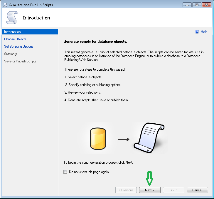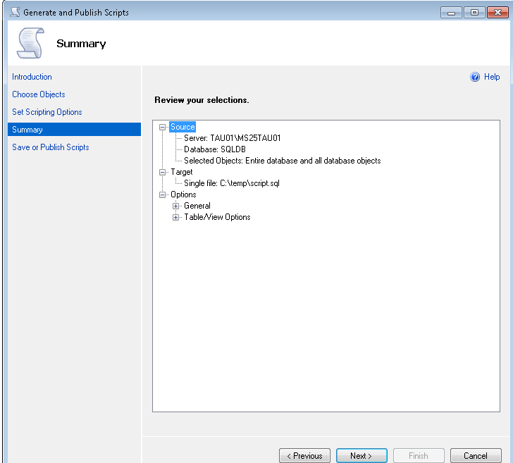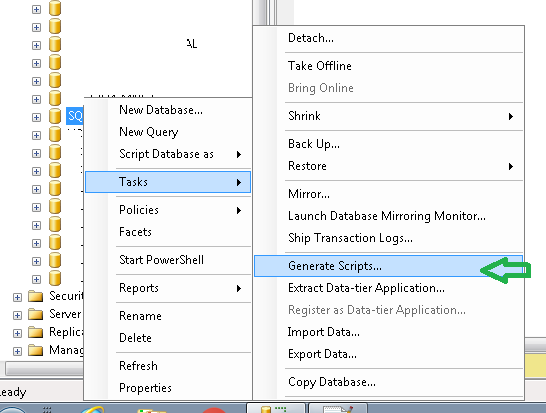 Connect to a server that’s running Microsoft SQL Server, expand the Databases node and then right-click Your Database > Tasks > Generate Scripts: