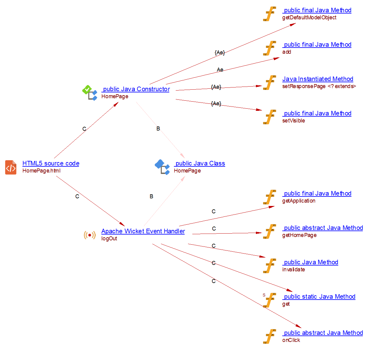 | HTML5 source code | HomePage.html | callLink | Apache Wicket Event Handler | logOut |