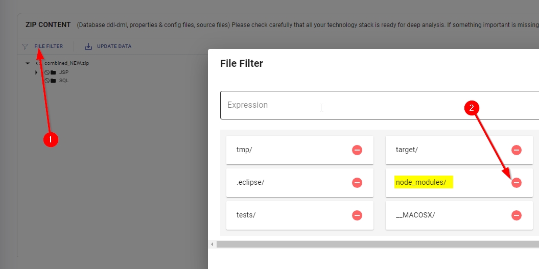 In HTML5/Javascript ≥ 2.3.7-funcrel, the analyzer supports JSTL sql tags in jsp files. This enables to create links between jsp code and tables present in analyzed databases, as for the preceding paragraph about ADODB.