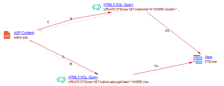 In HTML5/Javascript ≥ 2.2.8-funcrel, the analyzer supports ADODB in vbscript code present in asp, aspx and ascx files. This enables to create links between vbscript code and tables present in analyzed databases.