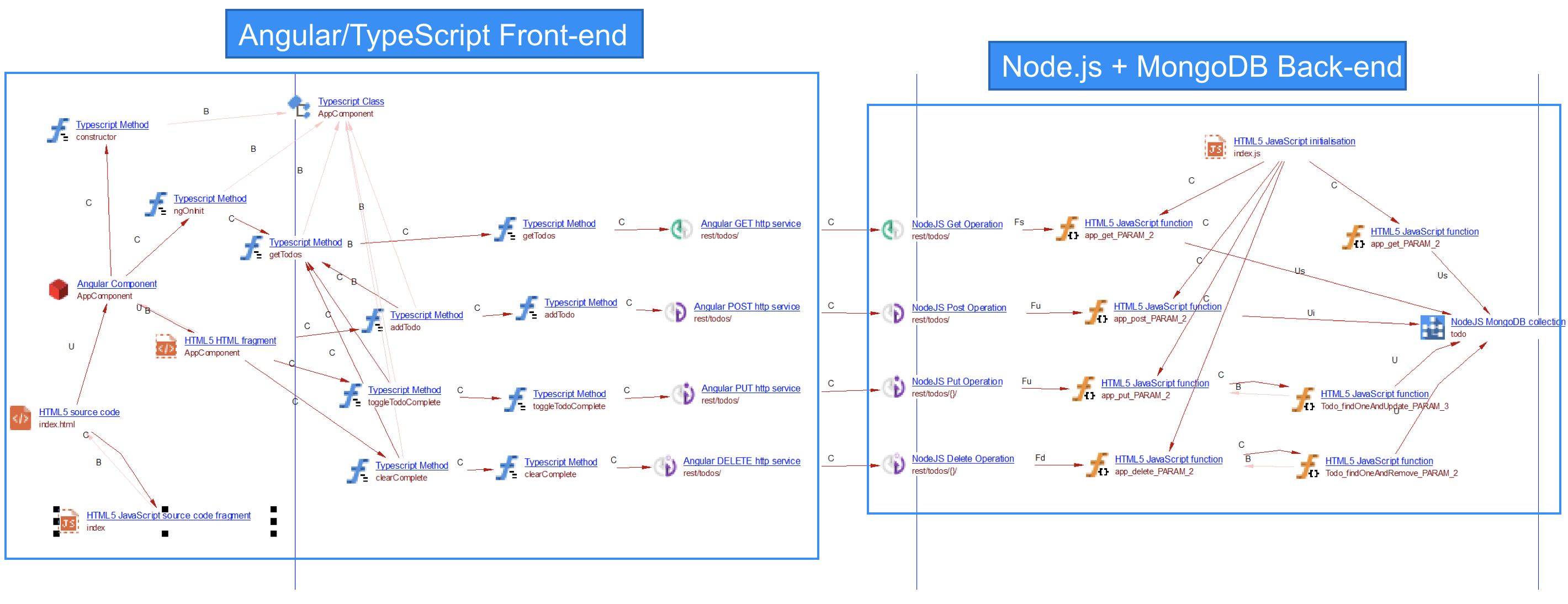 - callLink: Created when a method or a function is called. These links connect TypeScript Method and TypeScript Function elements between them.